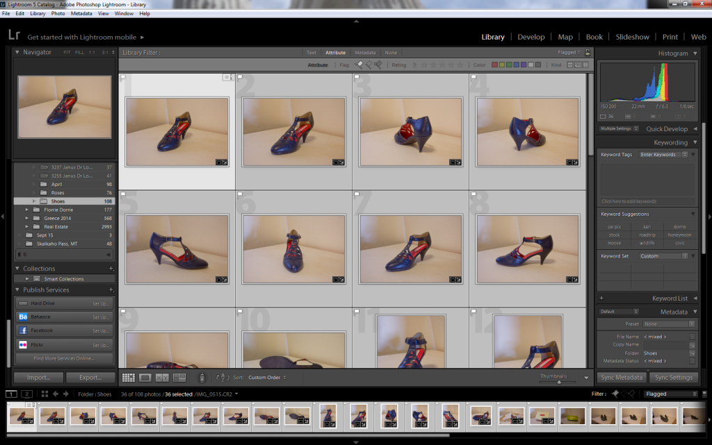 I start by importing my RAW photos into Lightroom for review. I will use the Lightroom flagging feature to select my favorite photos, and then export them as jpgs. You can also review your photos and batch export as jpgs using Adobe Bridge